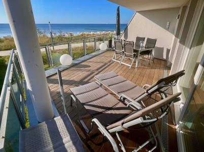 Unsere traumhafte neue Ferienwohnung liegt in der neu gebauten Ostseeresidenz, direkt am feinen Sandstrand der Ostsee. Sie hat eine Größe von 112 m².